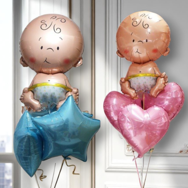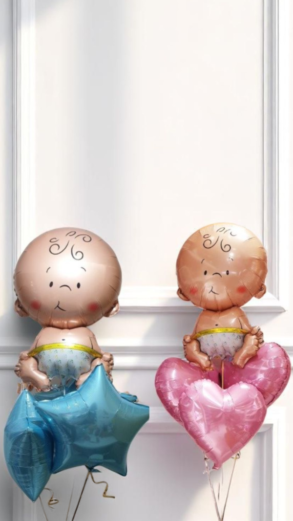 Este SET incluye 1 figura grande de bebé + 3 estrellas o corazónes rosa o celeste.